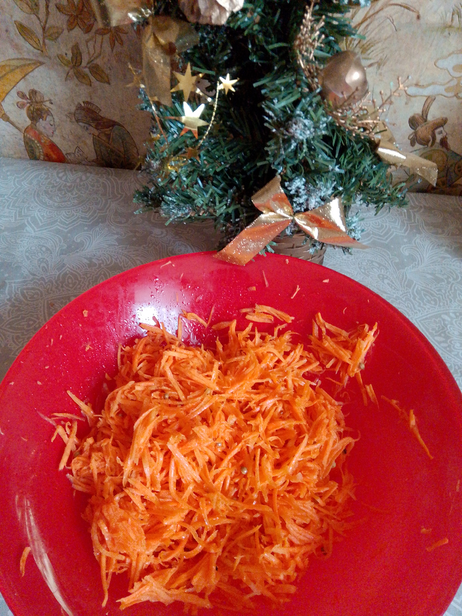 Ингредиенты: 500г сырой моркови 3 зубчика чеснока 3 ст. л растительного масла 2 ч. л. Сахара 1 ч. л (без горки) соли 1 ст. л 9% уксуса 1 ч. л. зёрен кориандра 1/3 ч. л. Молотого чёрного перца Приготовление: Морковь трем на специaльной тёрке, выкладываем её в миску и первым дело добавляем 9% уксус. Всыпаем поочерёдно сахар, соль и перец. Далее добавляем кориандр. На сковороде подогреваем масло и добавляем к моркови, затем через пресс добавляем чеснок, все перемешиваем и даём нашей моркови настояться 3-5 часов( лучше делать на ночь). Все морковь по корейски готова. Приятного аппетита 😋
