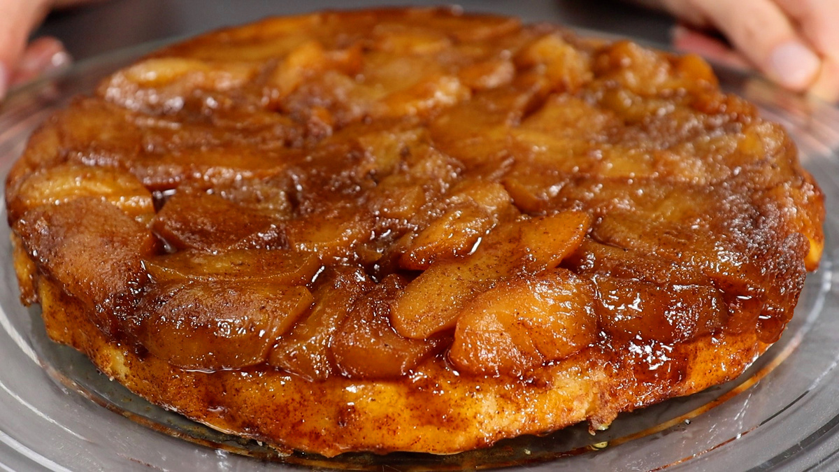 Сахар начал подгорать с яблоками, а спасать ситуацию было некогда, и она решила накрыть карамельные яблоки тестом. Испекла пирог и перевернула его – вот таким образом получился очень вкусный «перевёртыш».