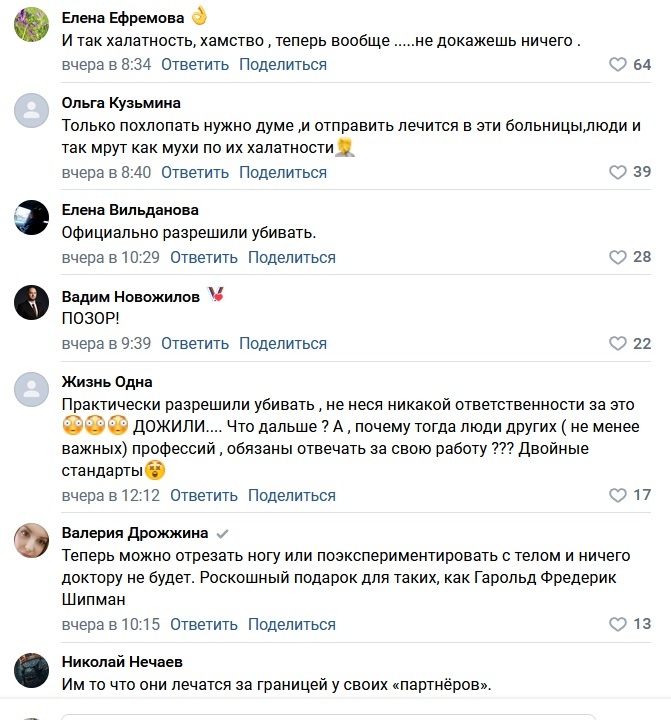 Это неправильно, безответственность и ненаказуемость приведет к диким последствиям. Пациенты будут становится инвалидами и умирать гораздо чаще.