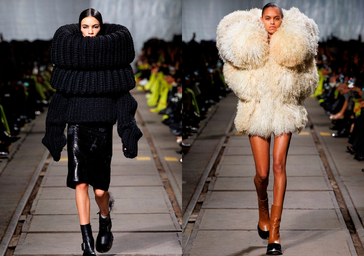 Бренд Alexander McQueen всегда отличался своим эпатажем и очередная зимняя коллекция, представленная дизайнером модного дома Шоном Мак Гирром не исключение. На подиуме были представлены гротескные образы на тему объемных свитеров и шуб. А так же варианты для тех, кому в холодное время года хочется посильнее закутаться в теплые вещи, причем так, чтобы были видны только глаза. Как вам такая мода?
