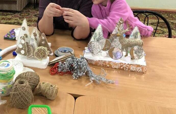Приветствую всех на своём канале! Декабрь- месяц для любой мастерицы расписан поминутно,но даже при такой загруженности я нахожу возможность ,чтобы провести мастер-класс .Вот Вы скажете,а при чем тут мастер-класс и музыка.Сейчас всё расскажу и покажу. А сегодняшний свой мастер-класс я начала так..говорят,что когда человек что то творит красивое,создает сувениры или красивые вещи,то у него поёт душа.И сегодня я слушала музыку души от созданных сувениров. Это особая атмосфера,когда воздух вокруг наполнен детским смехом,тихими разговорами..А создавали мы сегодня новогоднее панно из ёлочек,со стороны кажется,что всё просто..но посидеть-потрудится всё же пришлось.Детишки крутились возле меня,а мамы творили сказку.(листайте галерею) И в итоге появились прекрасные композиции,каждое панно со своим настроением,красками,огоньками..Но разве это не чудо,когда из обыкновенного получается такое..да смотрите сами. Ну и какой мастер-класс без чаепития..и я подготовила для своих девчат ещё сюрприз.Это