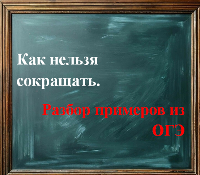 Такой излюбленный прием решения, как сокращение дробей, может оказаться весьма коварным, если применять его неправильно. Сегодня предлагаю вашему вниманию несколько примеров того, как можно, и как нельзя сокращать дроби. 1. Сокращать можно только одинаковые множители. 2. Сокращать числитель одной дроби и знаменатель другой дроби можно только в том случае, если дроби умножаются. Если дроби складываются или вычитаются, так сокращать нельзя. 3. При делении (или сокращении) степеней из их показателей вычитается наименьший показатель (см. пример 4). Еще немного алгебры из 8-9 класса Поблагодарить автора можно лайком) и комментарием, а еще подпиской на канал