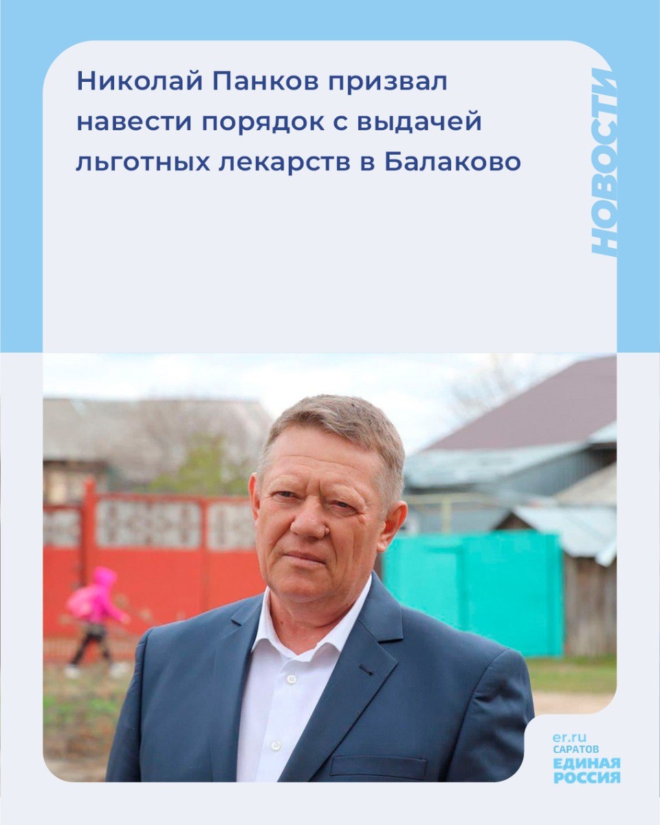 ❗️Иначе придётся обращаться в правоохранительные и контролирующие органы, подчеркнул депутат Госдумы. Жители Балаково рассказали депутату Госдумы Николаю Панкову о проблемах с выдачей льготных лекарственных препаратов. Об этом он сообщил в своем телеграм-канале «Пара слоV». 💬«Даже не интересно, кто из министерства здравоохранения поедет в Балаково. Но законность и порядок с выдачей льготных лекарств должны быть восстановлены. Иначе придётся обращаться в правоохранительные и контролирующие органы. В любом случае, жители должны быть обеспечены льготным лекарством. Это ответственность регионального Минздрава. О проблеме с выдачей льготных препаратов мне рассказали жители Балаково. Эта ситуация возникла не вчера. Долгое время люди были один на один с проблемой. Где произошёл сбой - на уровне района или на уровне министерства, жителей не интересует. Думаю, это быстро выяснят работники следственных органов. Виновные будут наказаны. Для этого мы недавно приняли закон. Согласно которому