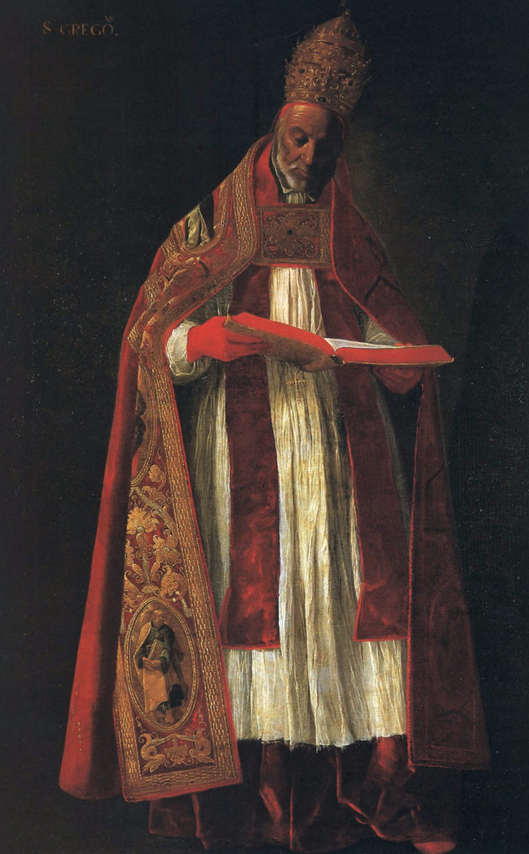Святой Григорий I, прозванный «Великим», был одним из самых прославленных пап. Родившийся в Риме в 541 году в добродетельной семье патрициев, он был сенатором и префектом города до вступления в орден Святого Бенедикта. В своем собственном доме в Риме он основал монастырь Святого Андрея, и там же принял сан в 575 году. Григорий был избран аббатом, затем кардиналом и, наконец, в 590 году верховным понтификом. Будучи папой, он сочетал просвещенное рвение с глубокой заботой о святости духовенства и поддержании церковной дисциплины. Григорий сыграл значительную роль в развитии римской литургии, и его имя до сих пор ассоциируется с кодификацией песнопения: григорианским хоралом. Его комментарии к Писанию оказали значительное влияние на христианскую мысль. Святой умер 12 марта 604 года. Римская церковь чтит его как одного из своих четырех великих Учителей и отмечает годовщину смерти. Григорий был покровителем музыкантов и учёных, а после Тридентского собора его покровительство распрост