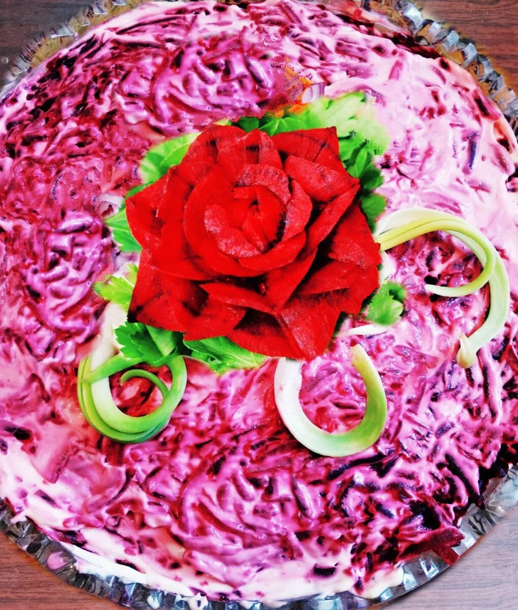 Сейчас у нас пост, и захотелось мне очень поэкспериментировать. Я люблю разные кулинарные фантазии воплощать в жизнь. И решила приготовить вот такой салат. Это слоёный салат, похожий на сельдь под шубой, но полностью овощной. Без яиц и сельди. Даже майонез для этого салата я сделала постный. Думаю, что такой рецепт подойдёт к праздничному столу для людей, соблюдающих пост. Майонез я приготовила сама, чтобы было максимально больше пользы. Продукты: Примечание: количество ингредиентов может варьироваться в зависимости от ваших предпочтений. Способ приготовления постного майонеза Муку просеять, смешать с водой так, чтобы не оставалось комочков. Нагреть до закипания, всё время помешивая. В чашу блендера влить сок лимона, добавить соль и сахар, размешать ложкой. Добавить растительное масло и горчицу. Взбить блендером в течение нескольких секунд. Остывший мучной взвар добавить частями, каждый раз взбивая массу блендером по несколько секунд, пока не выложите его полностью. Ещё раз всё взбит