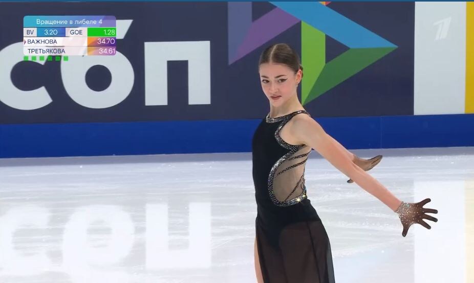 Софья Чаплыгина недавно наделала шуму с интервью, где много чего рассказала о тренере Горбачёвой. Но вообще выступление довольно неплохое, уверенное местами, хоть и с ошибками на каскаде, прыгнула 3 флип-3 риттбергер.