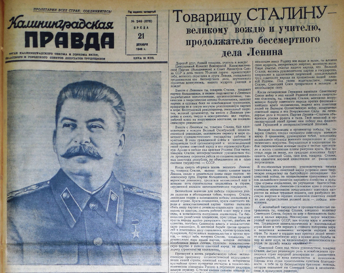 В 1949 году калининградцы вместе со «всем прогрессивным человечеством» с размахом отметили 70-летие отца народов
