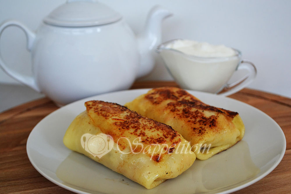 Перед подачей подрумяниваем блинчики с двух сторон на разогретой сковороде со сливочным маслом.