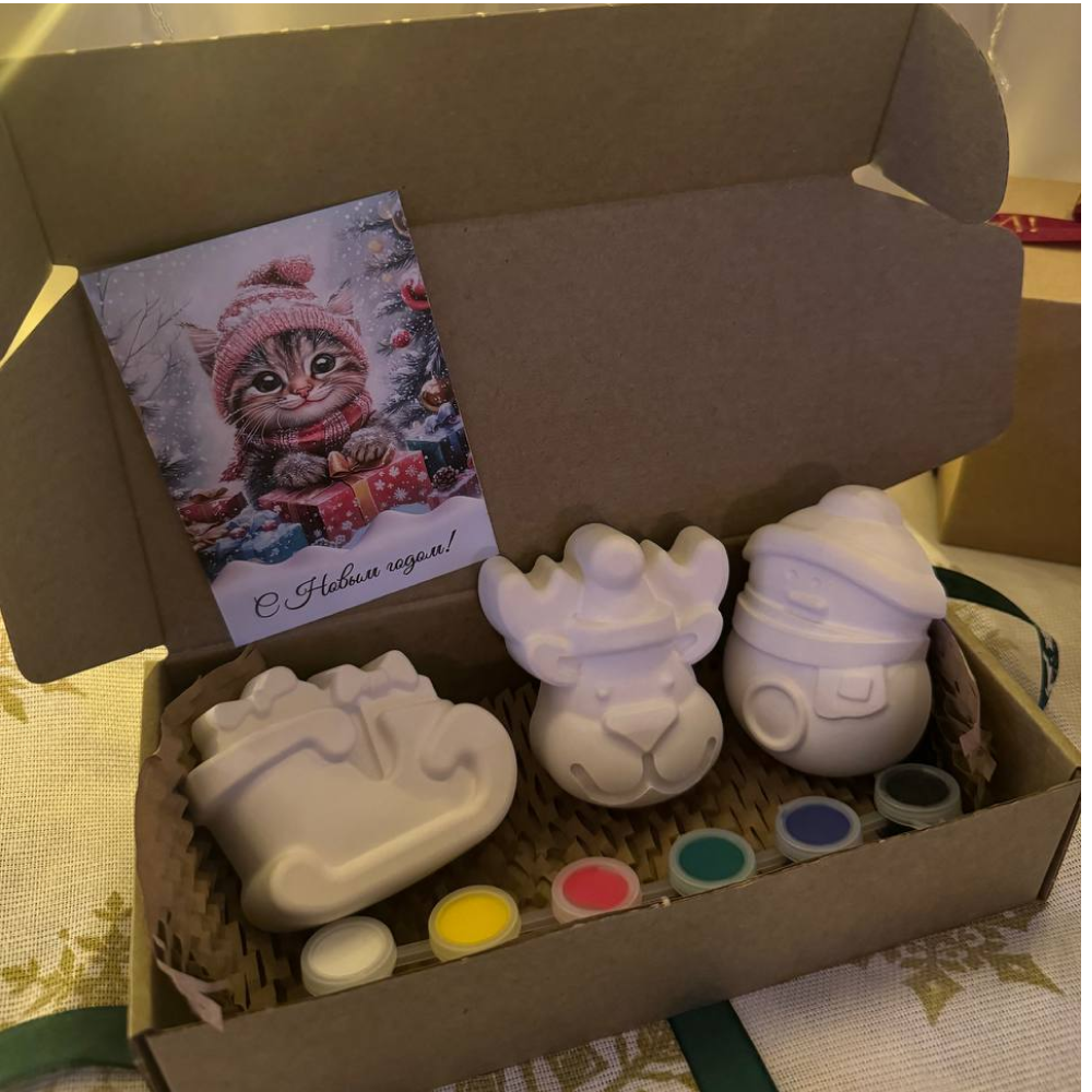 - Легко и увлекательно Детям понравится процесс: превращать фигурки в яркие новогодние украшения с помощью красок. Это занятие захватывает с первых минут!