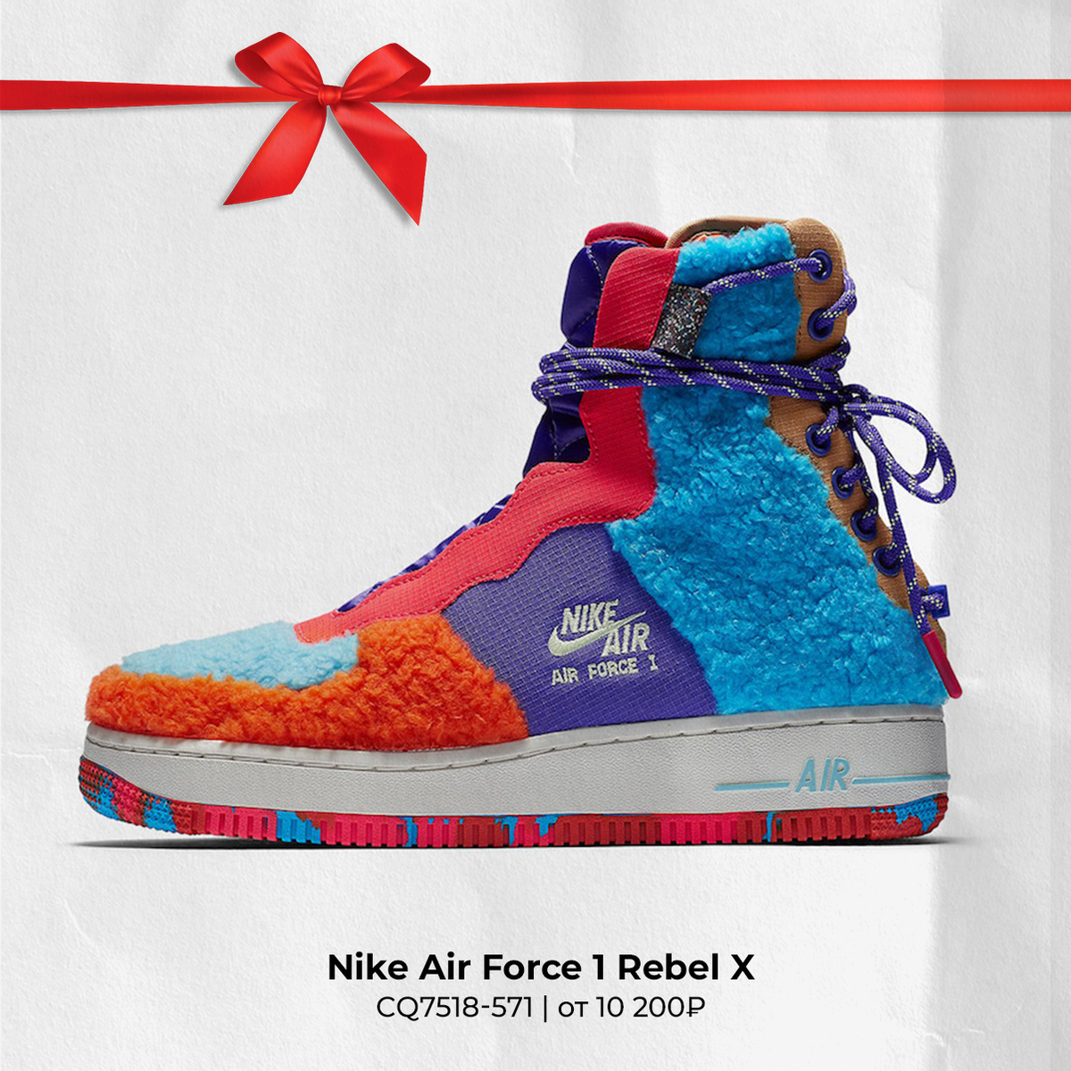 Или просто ходить по улице, в целом не сильно важно: модель такая яркая и необычная, что сразу привлекает внимание. Голубые и оранжевые накладки из шерпы классно контрастируют с подошвой, а привычная схема шнуровки здесь расположена сзади. Как вам такая пара? Nike Air Force 1 Rebel X, арт. CQ7518-571, цена от 10 200₽* *стоимость может изменяться в зависимости от курса и размера Больше интересного на нашем сайте POIZON