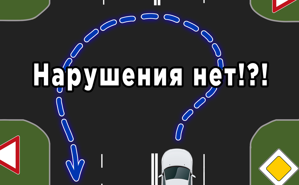 Учебный автомобиль выполнил разворот сместившись вправо, но при этом не нарушил Правила! Давайте разбираться почему! Перед нами перекресток. Перекресток - это место пересечения двух дорог. На данном рисунке перекресток имеет одно пересечение проезжих частей. На первый взгляд кажется, что двигаясь по такой траектории, мы нарушаем пункт 8.5, в котором сказано, что перед поворотом направо, налево или разворотом водитель обязан занять соответствующее крайнее положение на проезжей части. Еще раз смотрим на картинку 🙄, дак мы его и заняли! Ведь мы въехали на пересечение с крайнего левого положения! Верно? Верно! Потом вы подумаете, но тогда получается мы сделали перестроение на перекрестке, а этого делать нельзя! Ну во-первых, было ли перестроение это еще надо доказать, а во-вторых - и вовсе никакого пункта правил запрещающего перестроение на перекрестке - не существует! И кстати, на пешеходном переходе это тоже не запрещено! Соответственно, ничего не нарушили! Пункт 8.6 правил, говорит