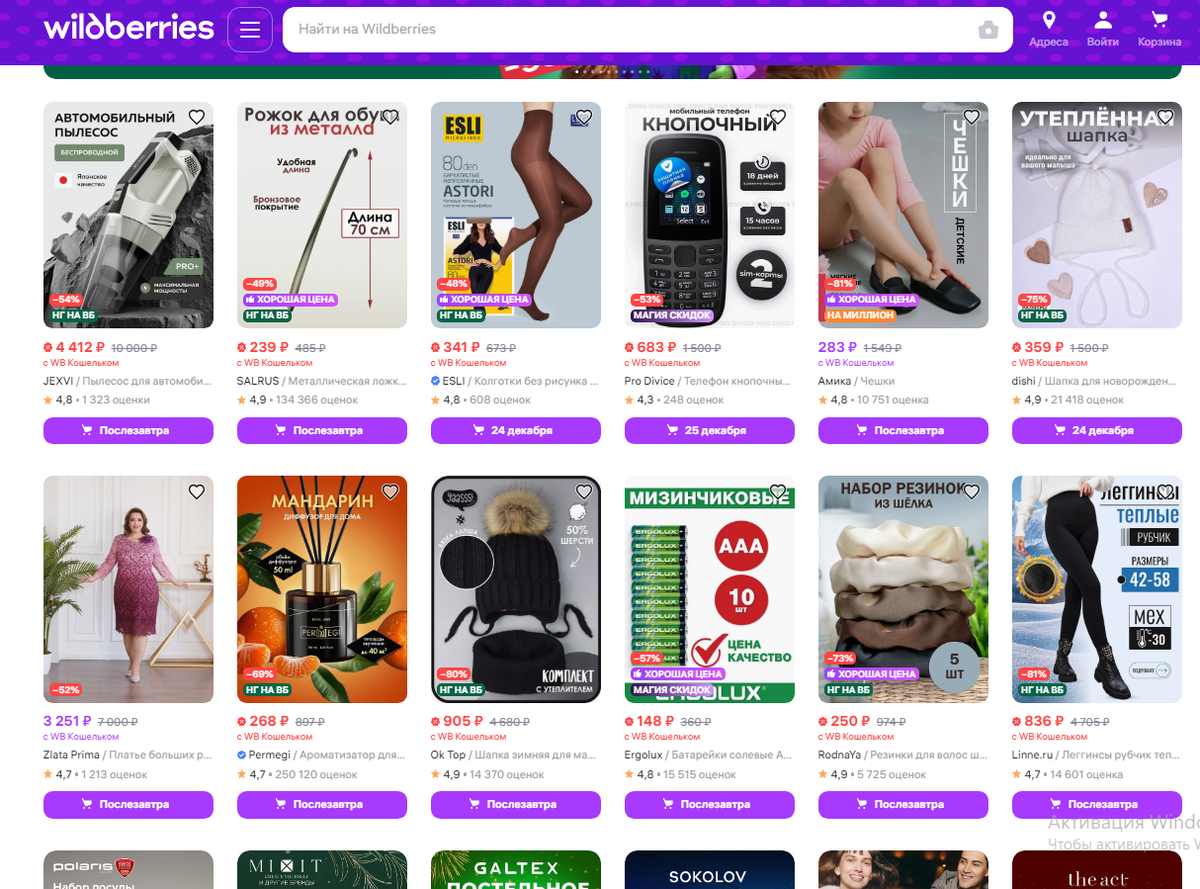 - Одежда и обувь. Эти категории включают в себя широкий спектр товаров — от повседневной одежды до спортивной и домашней.