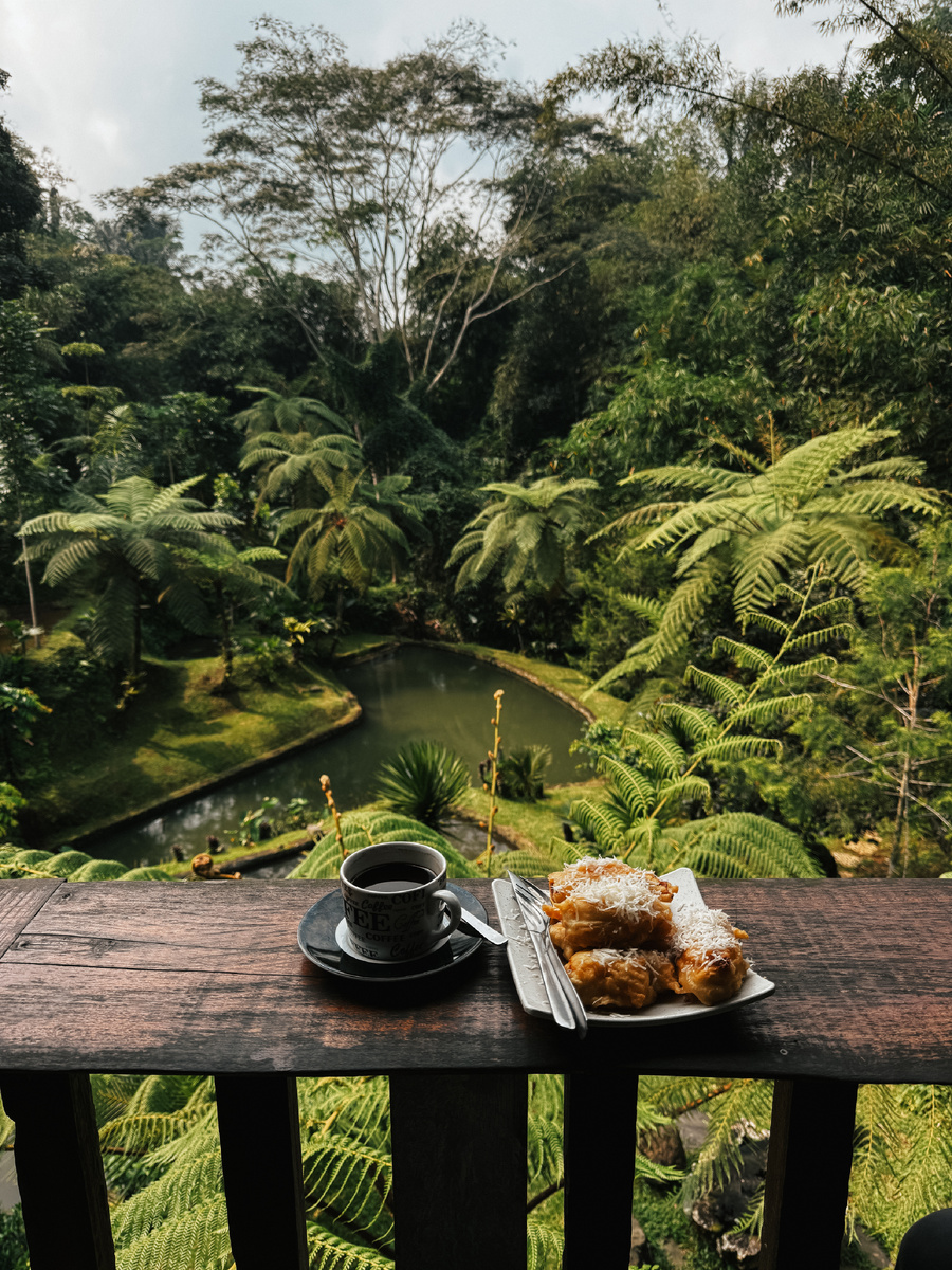 Ресторан предлагает своим посетителям не только вкусную кухню, но и потрясающие виды на окружающую природу, включая вулкан Батур. Мы приехали в дождливое время, но было тоже очень красиво!