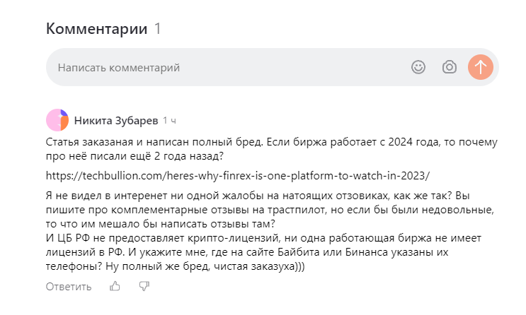 Это будет дополнение к статье в которой мы раннее писали про мошенническую инвестиционную платформу Финрекс Вот ссылка на основную статью:https://dzen.ru/a/Z2A8gC_g3VhpZ3Yo Мошенники оставляют абсолютно идентичные комментарии под статьями о разоблачении их проекта и негативными отзывами. Ссылка в этом сообщении, выступающая аргументом о длительной работе проекта Finrex, ведет на купленную англоязычную статью, в конце которой мы можем увидеть ссылку на официальный сайт компании и её Твиттер аккаунт Страница Finrex в твиттере заблокирована Синтетический тест проверки сайта на мошенничество показал сомнительных 27 баллов из 100. Очень важной деталью является, домен проекта