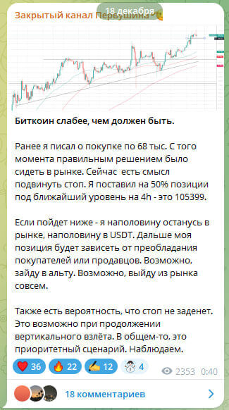 Хотя выше обещал ближайшие дни давать контент только на закрытом канале, молчать после прошедших изменений на рынке совесть не позволяет. Обсудим по порядку. Во-первых, я вышел из биткоина по 105399 на 50% объема, набранного ещё в октябре. Об этом оперативно писал здесь (1 скриншот). На оставшуюся половину — до сих пор в рынке. Тренд не сменился, в моменте лишь иссякла сила покупателя и прошла коррекция. Приоритетный сценарий — коррекция до 86 тыс (нижний уровень на втором скриншоте). Возможен, конечно, вариант отскока и от текущей зоны. Но учитывая обвал альтов, рынок слаб и не должен удержаться. Чего я не ожидал никак — настолько глубокого падения альтов (3 скриншот). Если это не отмена сценария с альтсезоном, то набирать монеты можно прямо сейчас. В таком случае дешевле уже не будет. Но риски сильно возросли. Поэтому если и закупаете, то на небольшую долю счета. Я всё ещё наблюдаю в стороне. 👉🏻 Торгую на ByBit / BingX