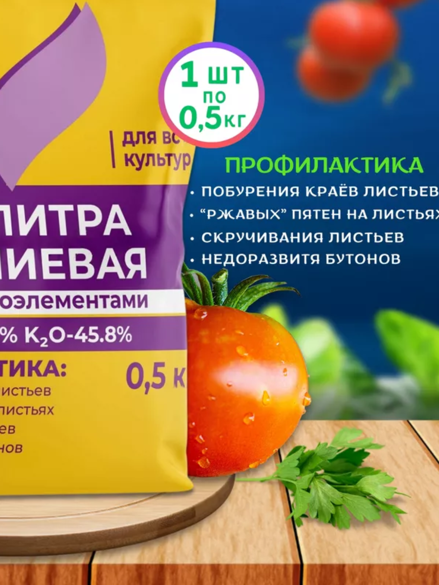 Если делать водорастворимые удобрения, одного пакета селитры (0,5 или 1 кг) хватит на весь сезон, это большая экономия. Когда я удобряла по грунту, мне пришлось заказать 10 кг.