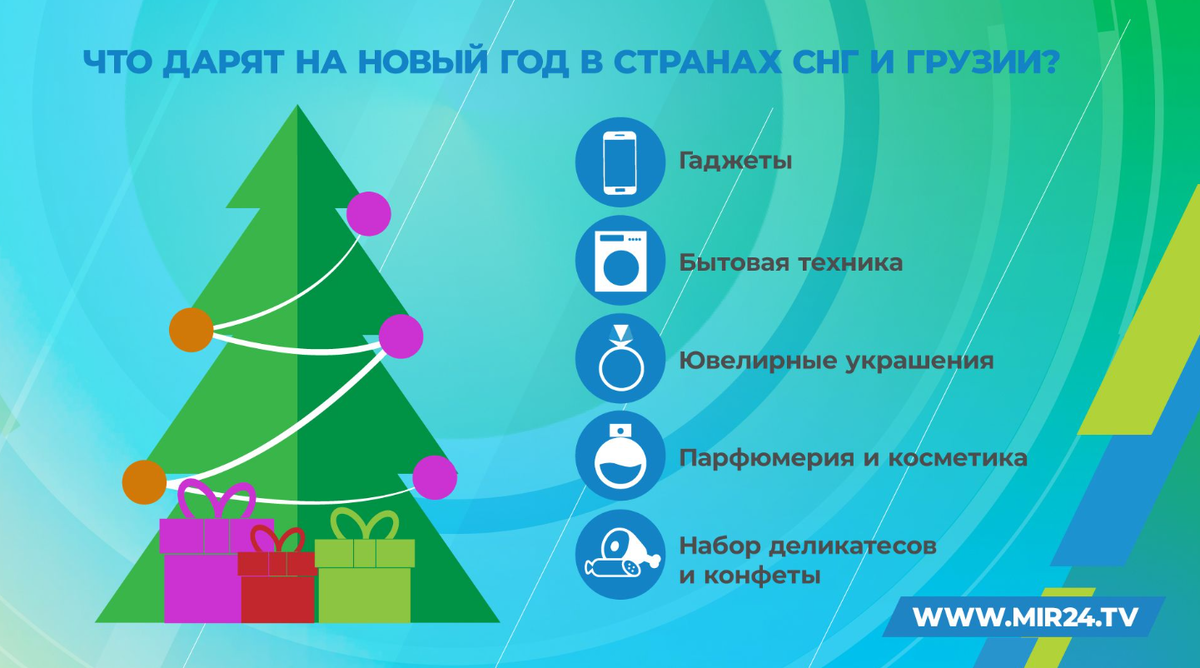 Во всех странах СНГ в эти дни царит предпраздничное оживление. Вне зависимости от национальных традиций, светский Новый год повсюду на постсоветском пространстве отмечают с Дедом Морозом и Снегурочкой, нарядной елкой и подарками. Выбором подходящих подарков в предпраздничные дни не заняты только те, кто уже успел купить их заранее. И в каждой стране есть собственные представления о том, чем можно порадовать друзей и близких. О том, что дарят на Новый год в странах СНГ и Грузии, читайте в нашем материале.