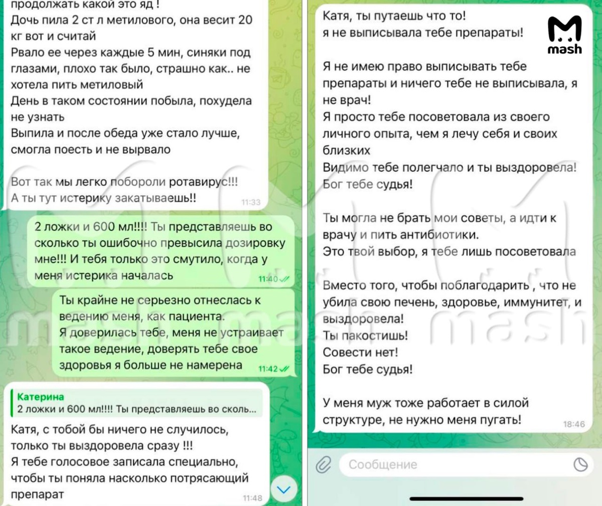 Москвичка потратила 50к на курс нутрициолога из соцсетей. После лечения у Екатерины появились тошнота, головокружение, сыпь по всему телу и проблемы с ЖКТ. Пострадавшая познакомилась с мастером по таблеточкам, Наталией Ярошенко, на йога-туре — подписалась на её блог и решила апгрейднуть здоровье по методике гуру, потому что готовилась завести ребёнка. На приёме женщина посмотрела результаты анализов. Исследования показали только дефицит витамина D. Но нутрициолог разглядела четвёртую стадию синдрома уставших надпочечников, эстрагенодоминирование, больной желчный пузырь и проблемы с печенью. И вообще — организм заполнен шлаками. Потому что в магазинах плохие продукты, а самолёты распыляют опасные вещества. Первую неделю Катя исправляла питание, со второй — стала пить таблетки. Для животных. "Ивермек" и "Фоспренил". Они якобы должны были сделать детокс и улучшить иммунку. Через некоторое время ей сказали пить "метиленовый синий раствор 1%", который применяют только наружно. Тогда девушка
