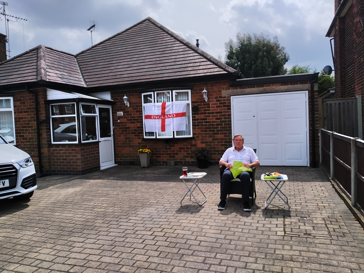 Я вам обещала рассказать, что случилось с нашим соседом напротив. Мы только сели в машину, чтобы отправиться в усадьбу Ренишоу, как к нам подошел его сын и попросил помочь вытащить отца из ванны, - у того вдруг отказали ноги. Муж с рукой после операции не мог бы помочь. Я вызвалась в помощницы, но они оба замахали руками - "король-то голый". Было бы смешно, если не было бы так печально. На фото ниже этот сосед четыре года назад в день празднования дня победы во время пандемии - а год назад до этого он похоронил свою замечательную жену.