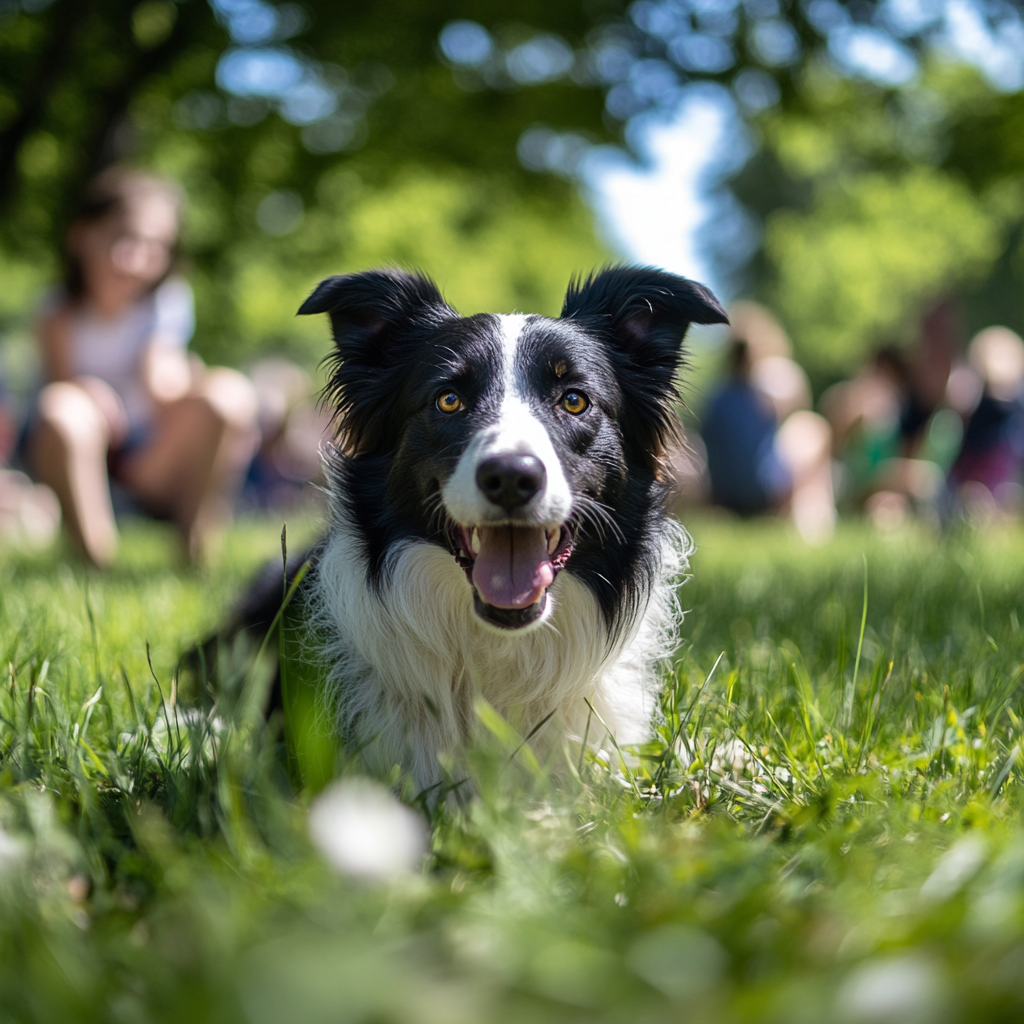 Пример: активный бордер-колли, несмотря на шум детей, успешно выполняет задания, демонстрируя выдержку и спокойствие.
