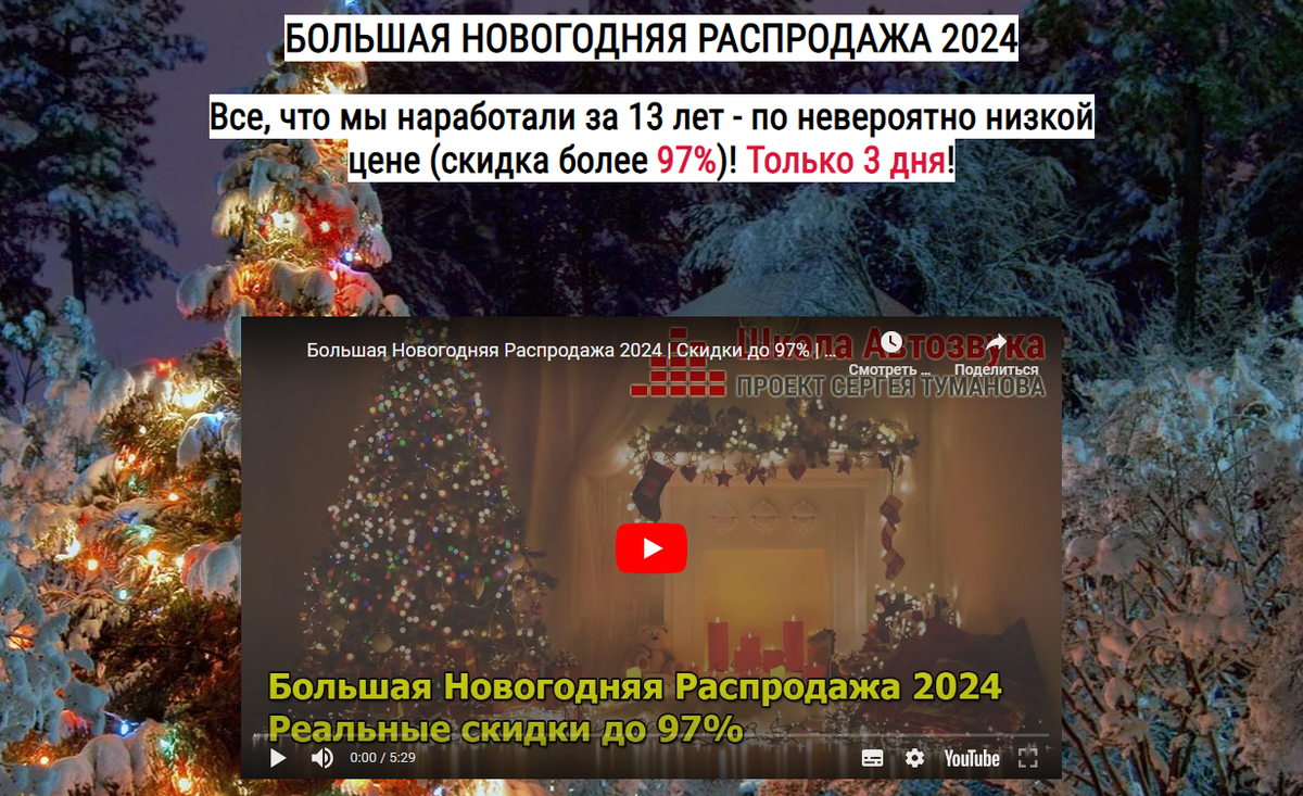 Мы начинаем! Ура ура ура, мы так долго этого ждали! Сразу к делу! Ссылка на страницу со сниженной ценой по Распродаже: https://caraudioschool.ru/bigsale2024/ Стоимость пакетов вас не просто порадует. Она вас ПОРАДУЕТ! Я уверен. В общем, хватит ждать, переходите по ссылке: https://caraudioschool.ru/bigsale2024/ Выбирайте нужный пакет, оформляйте и оплачивайте заказ, и скорее скачивайте, пока не ломанулась основная толпа! Успехов, и до встречи в обучающих материалах! С уважением, Сергей Туманов.