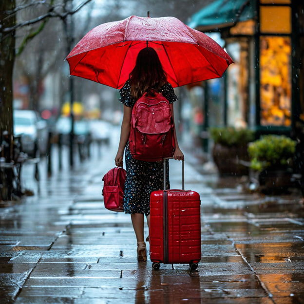 Ливень усилился. С неба начали падать такие огромные капли, что на мгновение дворники перестали справляться с потоком. У второго подъезда стояла девушка, а возле нее ― красный чемодан на колесах. Марат взял маленький зонтик из кармана двери, ловким движением раскрыл его и бросился к клиенту.