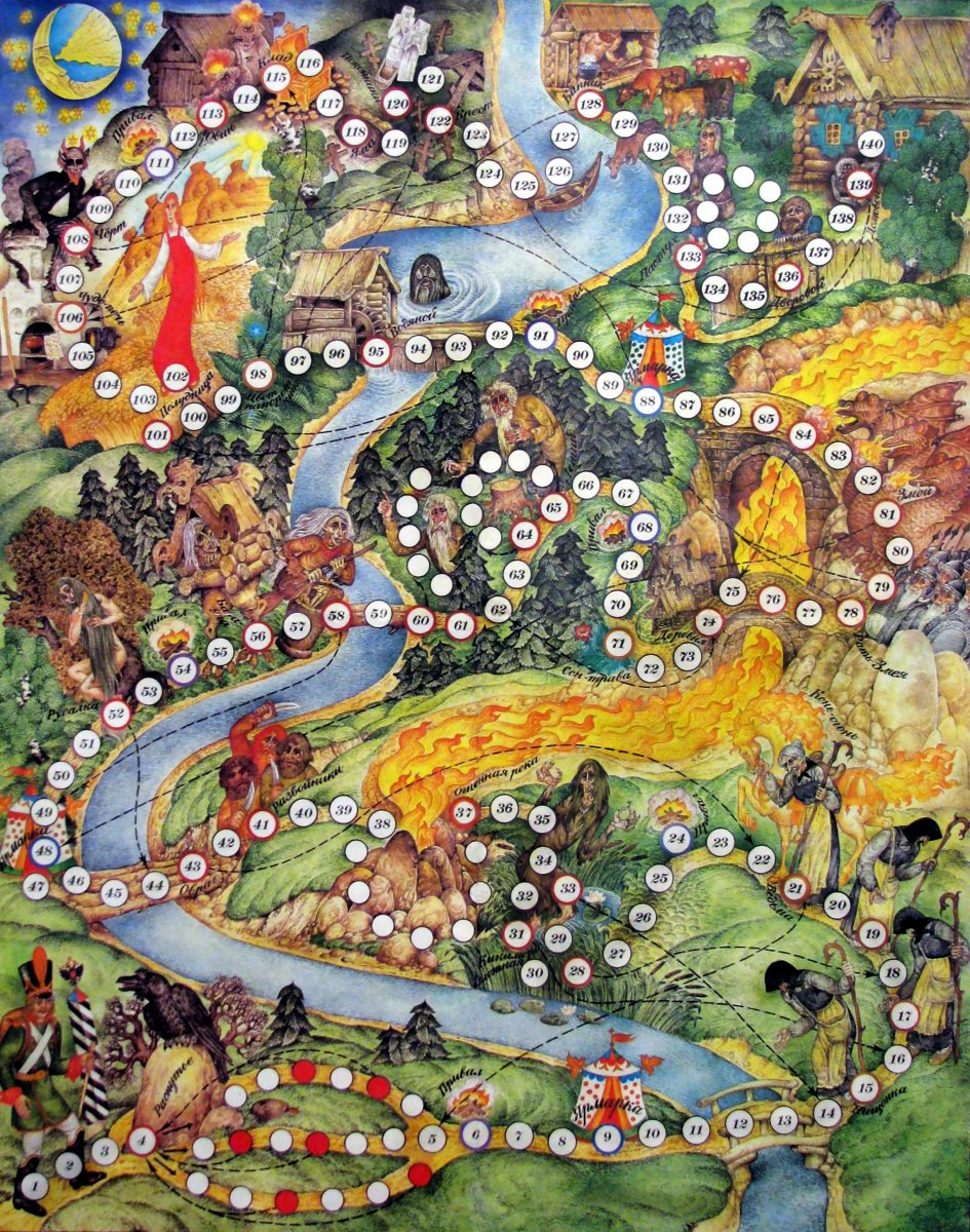 ПНП Сказочная бродилка. В детстве очень нравилась из-за атмосферных описаний, красивых иллюстраций и сеттинга славянской мифологии. Хотя объективно от стандартных "кинь-двинь" отличается только наличием предметов, которые могут защитить от определенных опасностей. Фото с tesera.ru #настолки #настольные игры #настольныеигры