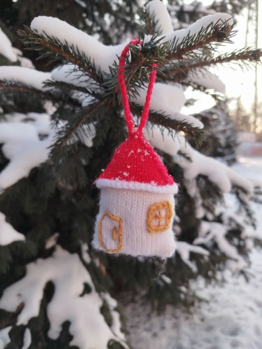 Экспресс мастер - класс по вязанию спицами Новогоднего Домика на ёлку Канал tomamatatta
