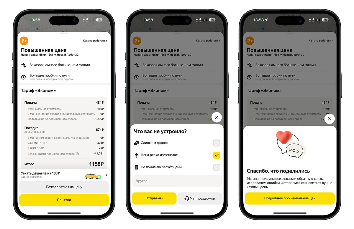 В приложении Яндекс Go появилась возможность пожаловаться на стоимость поездки. Новая функция запущена в тестовом режиме и позволяет пассажирам оставить обратную связь о цене такси, указав, что именно вызывает вопросы: итоговая сумма, изменение стоимости из-за пробок или высокого спроса, либо правила расчета. Чтобы воспользоваться этой функцией, нужно нажать на значок рубля в левом верхнем углу экрана после выбора маршрута и тарифа. Затем в разделе детализации цены пассажир может отправить свои комментарии. Служба поддержки оперативно ответит на обращение, предоставив разъяснения о расчете стоимости. Также пользователям предложат советы по экономии на будущих поездках. Все отзывы будут проанализированы, чтобы определить наиболее частые причины недовольства и разработать меры по регулированию цен в следующем году.