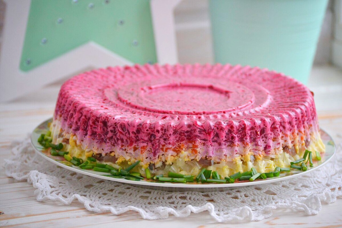 Сельдь под шубой - шедевр советской кулинарии, ставший атрибутом праздничных застолий во второй половине прошлого века. Этот слоеный салат покоряет сочетанием разных вкусов от соленого до сладкого, аппетитным видом и разнообразием подачи. Готовьте селедку под шубой в будни и праздники! Всем известен базовый состав селедки под шубой: сельдь пряного посола, свекла, морковь, картофель, лук, яйца и майонез. Но за годы всенародной любви к шубе появилось много вариантов с добавлением других ингредиентов: красной рыбы, скумбрии, крабовых палочек, сыра, грибов, яблок, маринованных огурцов, морской капусты (в веганском варианте). Изначально первым слоем была сельдь, а верхним - свекла. Все остальные слои выкладывались в любом порядке. Но сейчас многие повара рекомендуют первым слоем выкладывать картошку. Во-первых, так удобно нарезать салат порционно: он держит форму, не расползается. Во-вторых, так салат лучше пропитается рыбой с двух сторон и будет сочнее, нежнее. Салат должен немного настоят