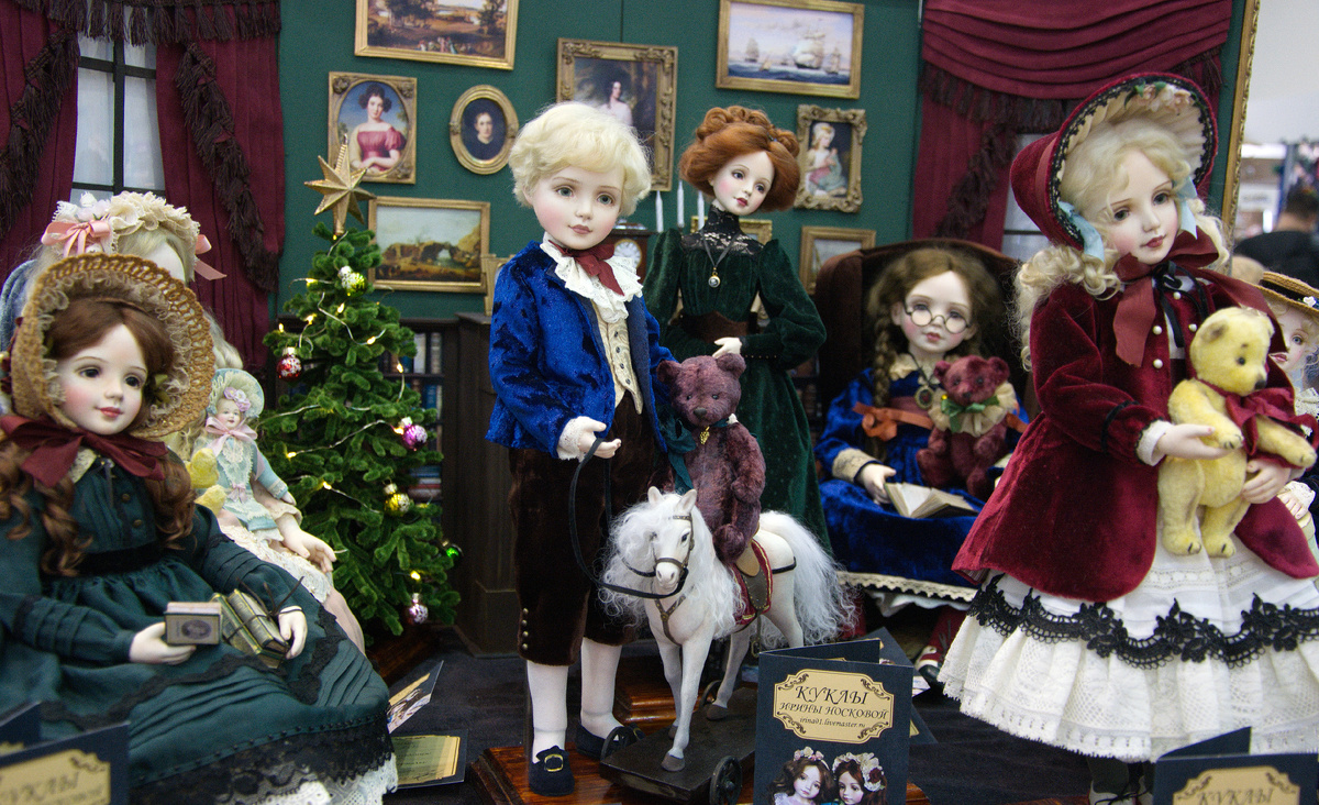 Хожу на эту выставку каждый год. Впервые пропустила в прошлый раз. Так получилось, что прямая линия и большая пресс-конференция Президента и Московская международная выставка "Искусство куклы" совпали по времени. Какая связь? - спросите вы. Локация у них оказалась общей ))) - Гостиный двор. И куклы со своей выставкой переехали в Экспоцентр на Краснопресненской набережной. До туда мне очень далеко и очень неудобно добираться. "Ладно" - подумала я, - один раз пропущу". Пропустила...Но и в этом году два этих глобальных мероприятия ))) совпали. Делать нечего - пришлось добираться с тремя пересадками. Не могла же я снова пропустить такое красивое и радостное событие. Тем более, думаю что куклы переехали в Экспоцентр на все последующие выставки. Павильон "Форум" оказался не хуже Гостиного двора - просторно, довольно хороший свет. Даже фонтан в центре зала. Можно выпить неплохой кофе и отдохнуть в кофейне. Правда, в самом выставочном зале мест для отдыха очень мало. 🎄Скоро наступят нов