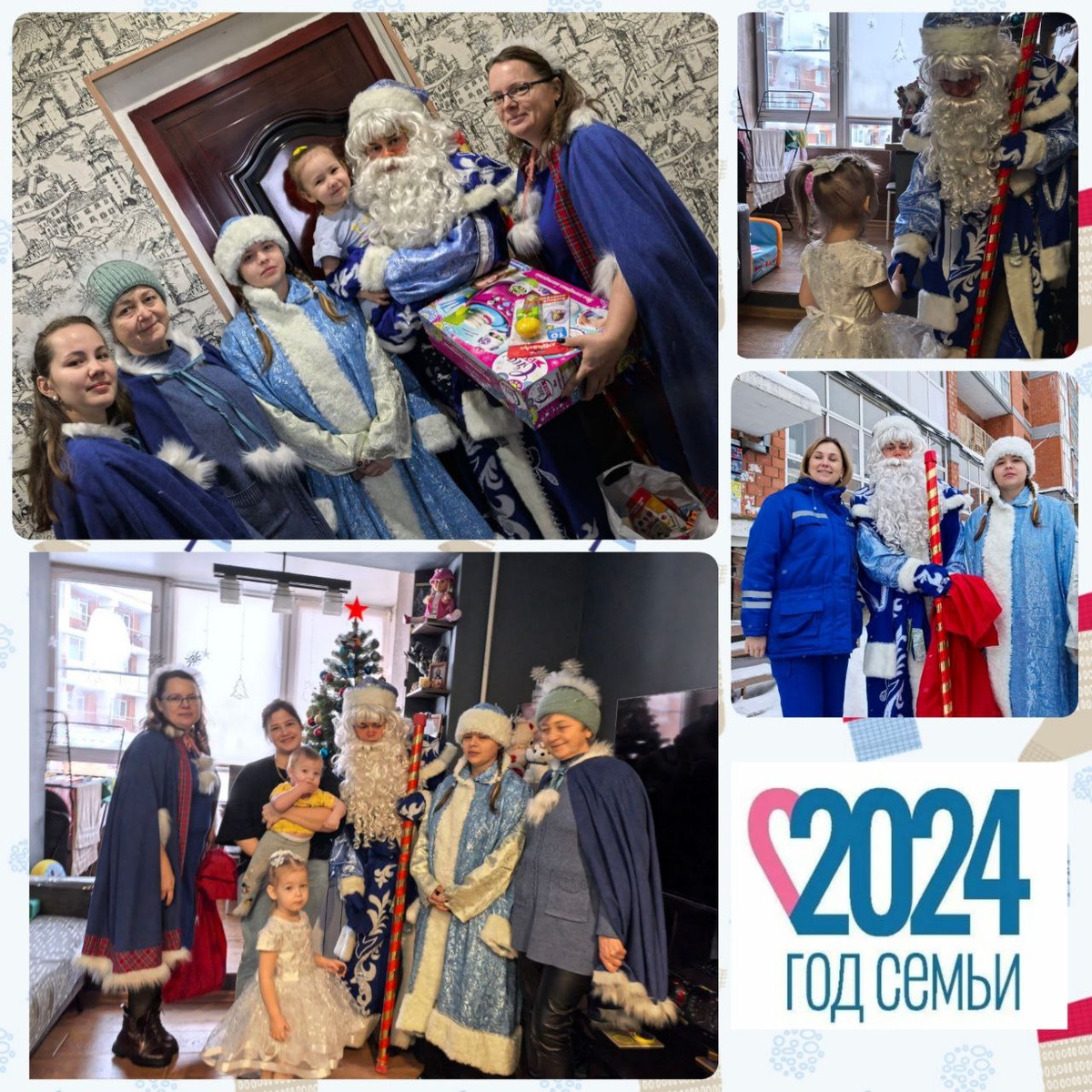 Новый год — это не просто календарный праздник, это время, когда семьи собираются вместе, представители одного народа и жители многих стран мира объединяются в ожидании чуда. Этот удивительный праздник наполняет сердца радостью и надеждой на лучшее, позволяя с оптимизмом смотреть в будущее. Как приятно, когда в такую волшебную пору к нам приходит Дед Мороз с полным мешком подарков! В эти моменты дети по всей стране ждут, готовятся и учат стихи, чтобы иметь возможность встретить волшебника и получить долгожданный дар. В рамках домашнего визитирования проекта "Молодая семья", а также в День многодетной семьи специалисты отделения постинтернатного сопровождения вместе с волонтерами в рамках акции "Дарю тепло" поздравили детей молодых мам с наступающим Новым годом. Мы все надеемся, что этот чудесный период принесет много радости, волшебства и детского смеха. В год Семьи особенно важно вспоминать о совместных семейных традициях, проводить время с самыми близкими и встречать Новый год в круг
