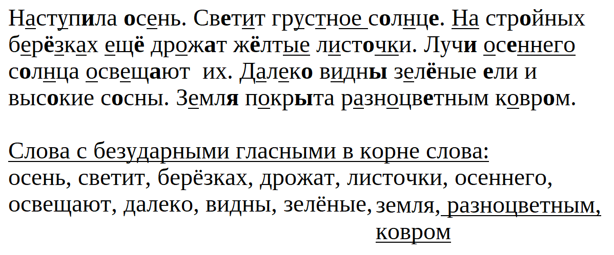 - Спишите текст. В каждом слове поставьте ударение, обозначьте безударные гласные:
