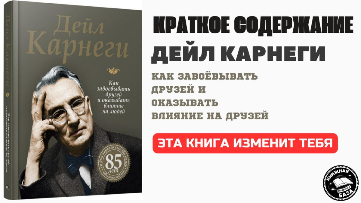 Приветствую всех на канале Книжная База с самыми сочными выжимками разнообразных книг! Сегодня мы с вами разберем одну из самых влиятельных книг по психологии общения – “Как завоевывать друзей и оказывать влияние на людей” Дейла Карнеги.