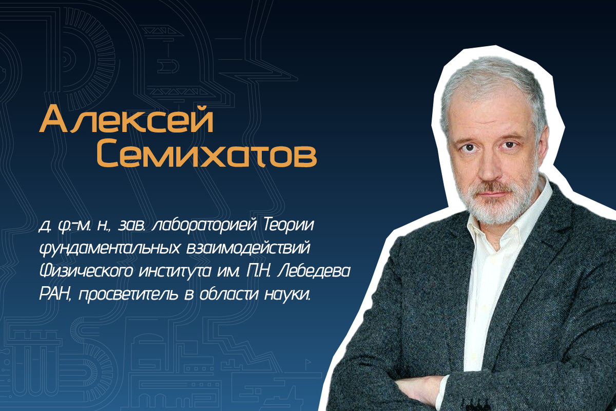 Алексей Семихатов — доктор физико-математических наук и заведующий лабораторией Теории фундаментальных взаимодействий в Физическом институте имени Лебедева РАН. Его исследования сосредоточены на глубочайших законах природы, таких как квантовая гравитация и симметрии фундаментальных частиц. Алексей Семихатов не только занимается передовыми научными исследованиями, но и активно популяризирует науку. Он объясняет сложные концепции квантовой физики и устройства Вселенной доступным языком, вдохновляя новое поколение ученых. Ведущий передачи «Вопрос науки» на телеканале «Наука», Вместе со своим другом, Владимиром Сурдиным, ведет подкаст «Вселенная плюс».. Книги: