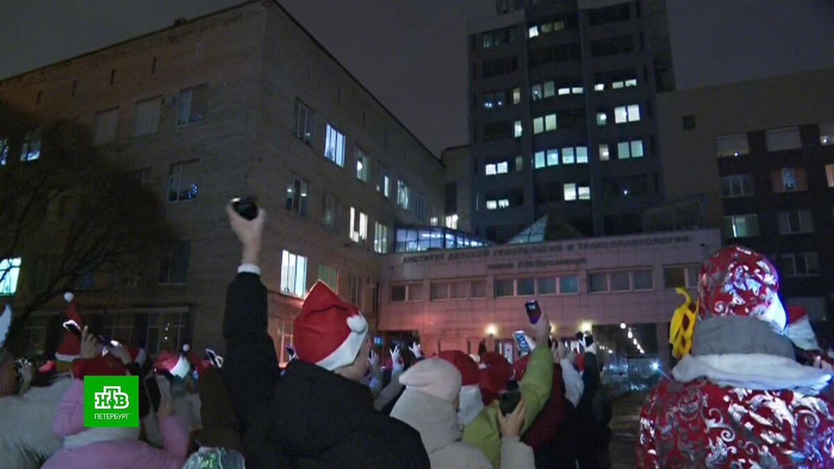 [ Смотреть видео на сайте НТВ ] У детской онкологической больницы имени Раисы Горбачёвой на улице Рентгена прошла трогательная новогодняя акция. Волонтеры благотворительного фонда «Энергия доброты» пришли под окна клиники поздравить с наступающим Новым годом детей, которые каждый день борются со смертельным недугом. Из-за тяжелой болезни малыши не посетят новогодние елки. Они не могут даже просто выйти на улицу. Сегодня в 19:30 на их лицах вспыхнула улыбка. Прильнув к стеклу, малыши завороженно наблюдали, как около 200 человек выстроились в форме числа 2025, зажгли фонарики смартфонов и под барабан выкрикивали персональные поздравления. Виктор Андронов, руководитель благотворительного фонда «Энергия доброты»: «Из окон палат кто-то машет фонариками. У нас уже был случай, когда именно под звон барабанов дети в первый раз вставали с постели. Нужен какой-то мощный эффект, чтобы человек нашел в себе силы и поднялся с постели». Кульминацией стал праздничный салют. Участники флешмоба не понас