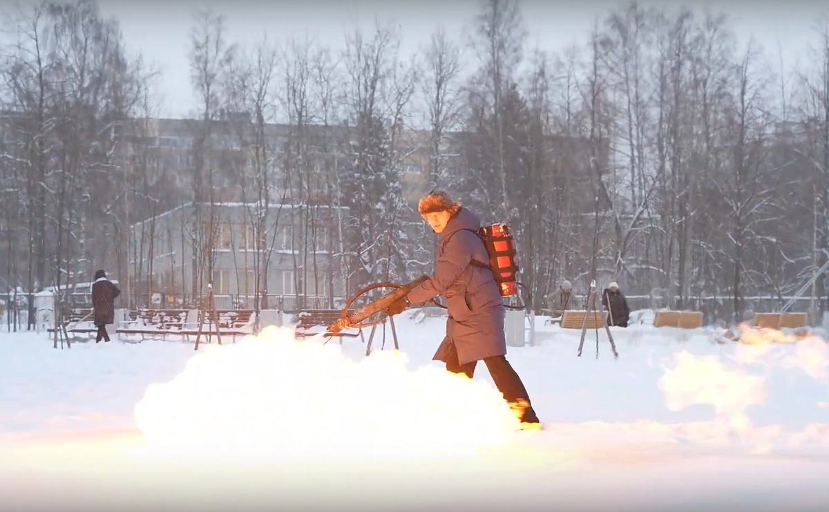 Это не псих сбежавший с дурки - это глава Северного муниципального округа Санкт-Петербурга Юрий Куликов, опубликовавший на своей странице в соцсетях ролик, в котором он растапливает снег в одном из дворов с помощью огнемëта.