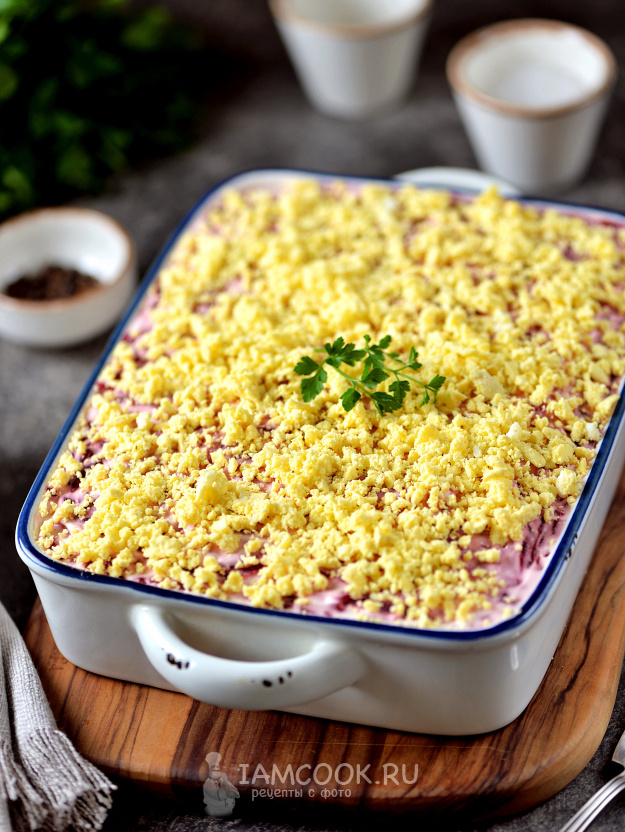 Готовьте побольше, потому что такого варианта шубы хватит ненадолго – тарелки пустеют быстрее, чем вы скажете «попробуйте этот салатик». [и нет, крабовые палочки тут не спорят с селедкой] 🛒 Что нам понадобится? 👩🍳 Как будем готовить? 1. Отварите свеклу, картошку и морковь в кожуре, а яйца – вкрутую. Главное, чтобы овощи были мягкими, а яйца не переварились (8-10 минут хватит). Для свеклы это около 40-50 минут, а картошке достаточно 20-30 минут. Остудите всё, очистите от кожуры/скорлупы. 2. Пока овощи отдыхают после варки, разберитесь с селедкой. Снимите с нее кожу, уберите все кости и нарежьте филе мелкими кубиками. Лук порежьте мелко и, если он слишком острый, сбрызните его уксусом. 3. Крабовые палочки нужно полностью разморозить, снять пленку и промокнуть бумажным полотенцем – лишняя влага нам не нужна. 4. Теперь начинается самое интересное – укладка слоев. Берите глубокую емкость и начинайте с половины натертого на крупной терке картофеля. Распределите его ровным слоем и смажьте
