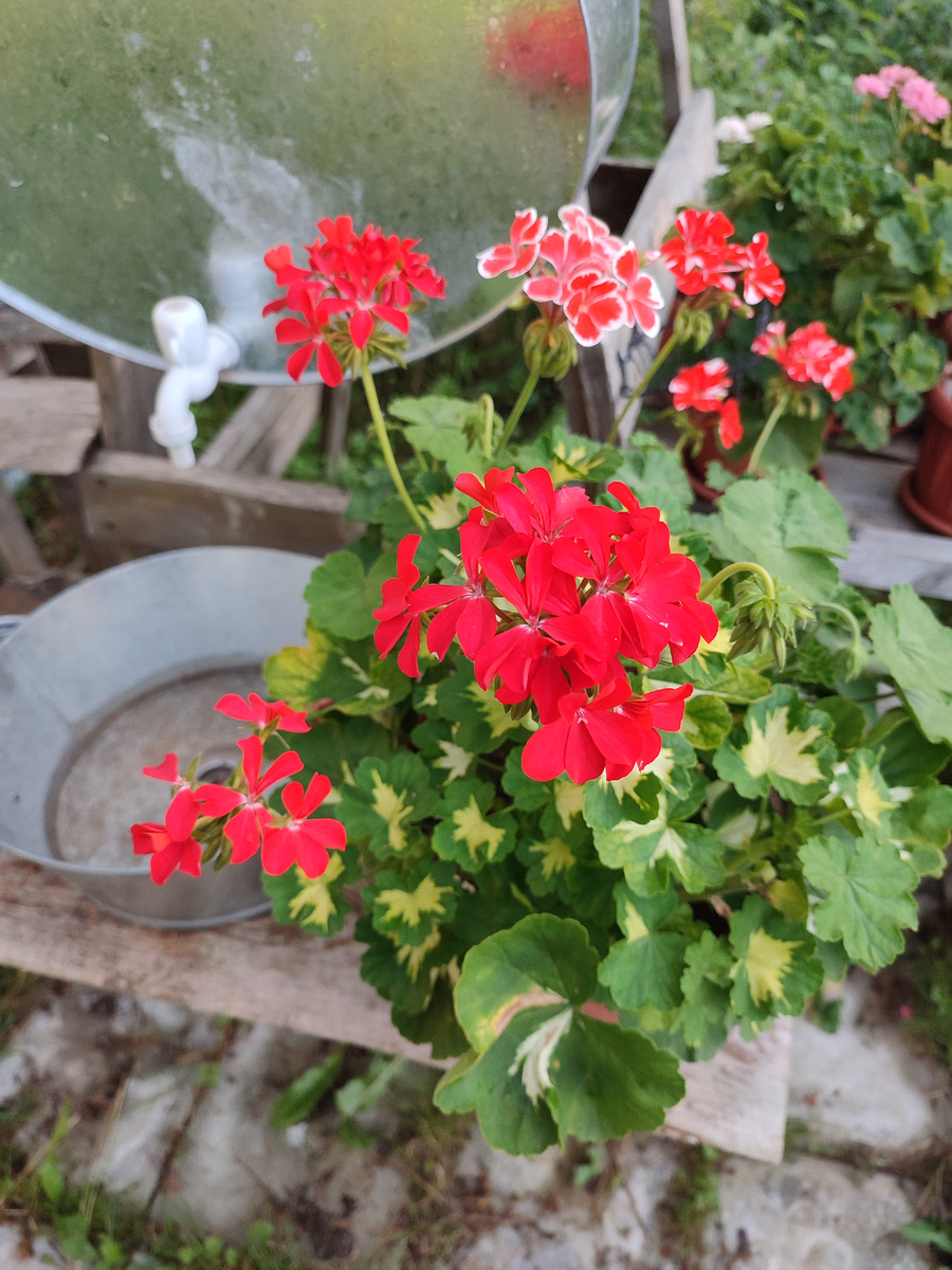 Вот такая Счастливая мысль! Этот необыкновенно красивый старинный английский сорт был выведен для украшения парков в королевских дворцах. Даже без цветов он выглядит эффектно с его разноцветными листьями - зелеными с яркой желтой бабочкой в центре. А когда появляются очень яркие малиново- красные цветы, от A Happy Thought невозможно оторвать взгляд. Селекционер Lynes UK 1873 год. Куст у A Happy Thought стандартного размера. Хорошо формируется, но в формировке нуждается. Отзывается и на прищипку и на обрезку. Сорт хорошо облиственнен, что делает его шикарным компаньоном в кашпо для сортов, склонных расти палкой. Минус для подоконников - сыпет лепестками. А вот для улицы это свойство - большой плюс, потому что не надо лезть в клумбу и обрывать засохшие цветы. Сорт очень хорош в открытом грунте! Но тут важно - в грунт надо сажать не черенок, а хотя бы годовалое растение. Корни должны быть уже заматерелые. Учитывая, что растение неприхотливое, могу рекомендовать его всем тем, для кого