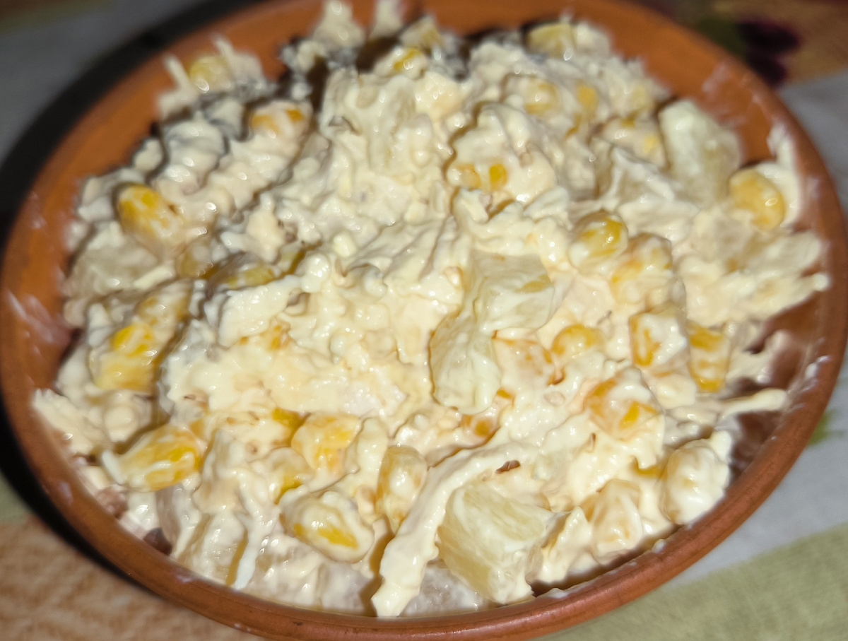 Классический рецепт салата с курицей и ананасом 3 варианта.