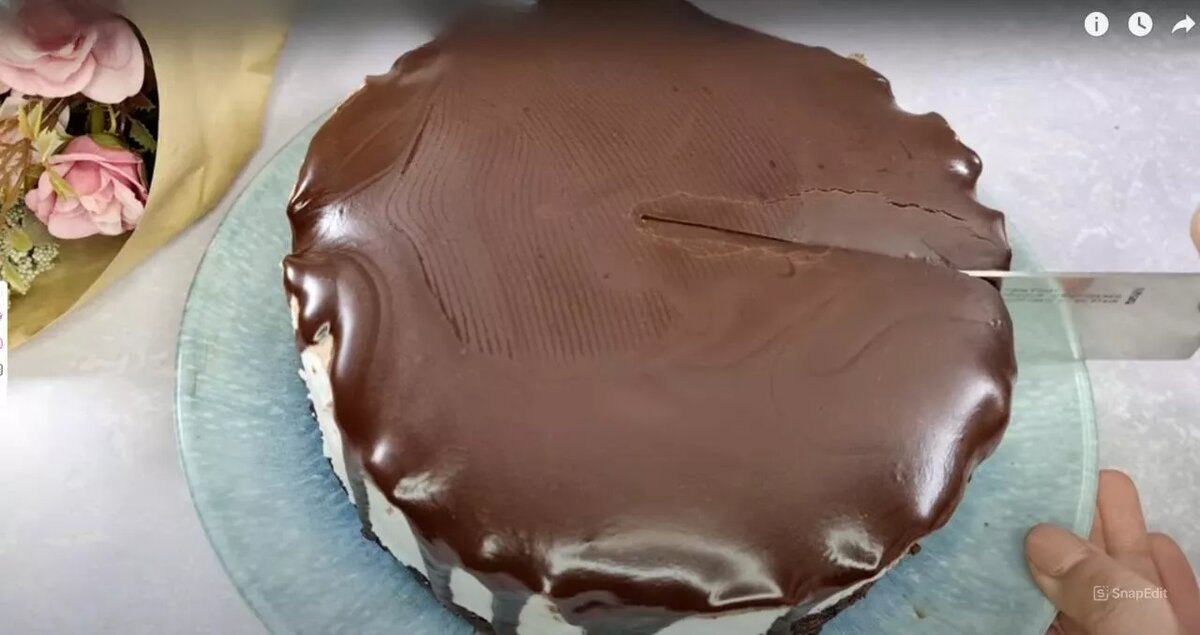 Покройте торт шоколадной глазурью. Поставьте в холодильник для застывания крема.