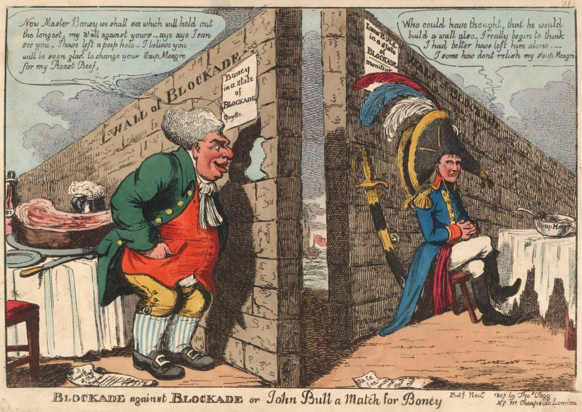 В 1806 году был издан Берлинский декрет, запрещающий всем союзникам Франции вести торговлю с Британией. В 1807 году Миланский декрет усилил блокаду, угрожая захватом судов, которые нарушали запрет.