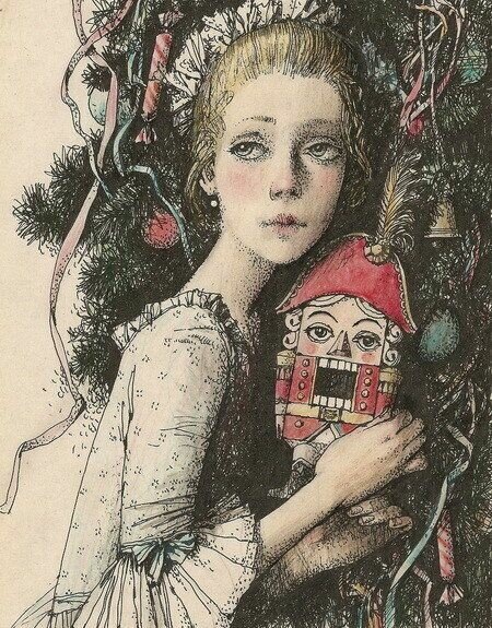 (на основе повести-сказки Э. Т. А. Гофмана «Щелкунчик и Мышиный король» 1816 год) ********************************************* Мари (рыдает, говорит со Щелкунчиком) — Господин Дроссельмейер, Мой добрый, мой милый! Я бедная девочка! Где взять мне силы? Как же мне быть? Что для вас могу сделать? Ну что же мне делать, что же мне делать?! С аппетитом львиным Противный король мышиный. Ну, отдам я все книжки свои королю И новое платьице. Платье люблю, Его подарил мне младенец Христос. Чудесное платье, как будто из роз. Прожорлив король, не насытить его. Когда он всё съест, я не дам ничего, Тогда он захочет погрызть моё тело. Ну что же мне делать, что же мне делать?! ********************************************* Щелкунчик (теплеет и шевелится в руках Мари, губы у него приоткрываются) — Мадемуазель Штальбаум, Вы моя бесценная, Подруга прекрасная, добрая, верная! Сколь многим я обязан вам! Не плачьте! Он не страшен нам. Оставьте все книжки для чтения вашего И платьице это для праздника