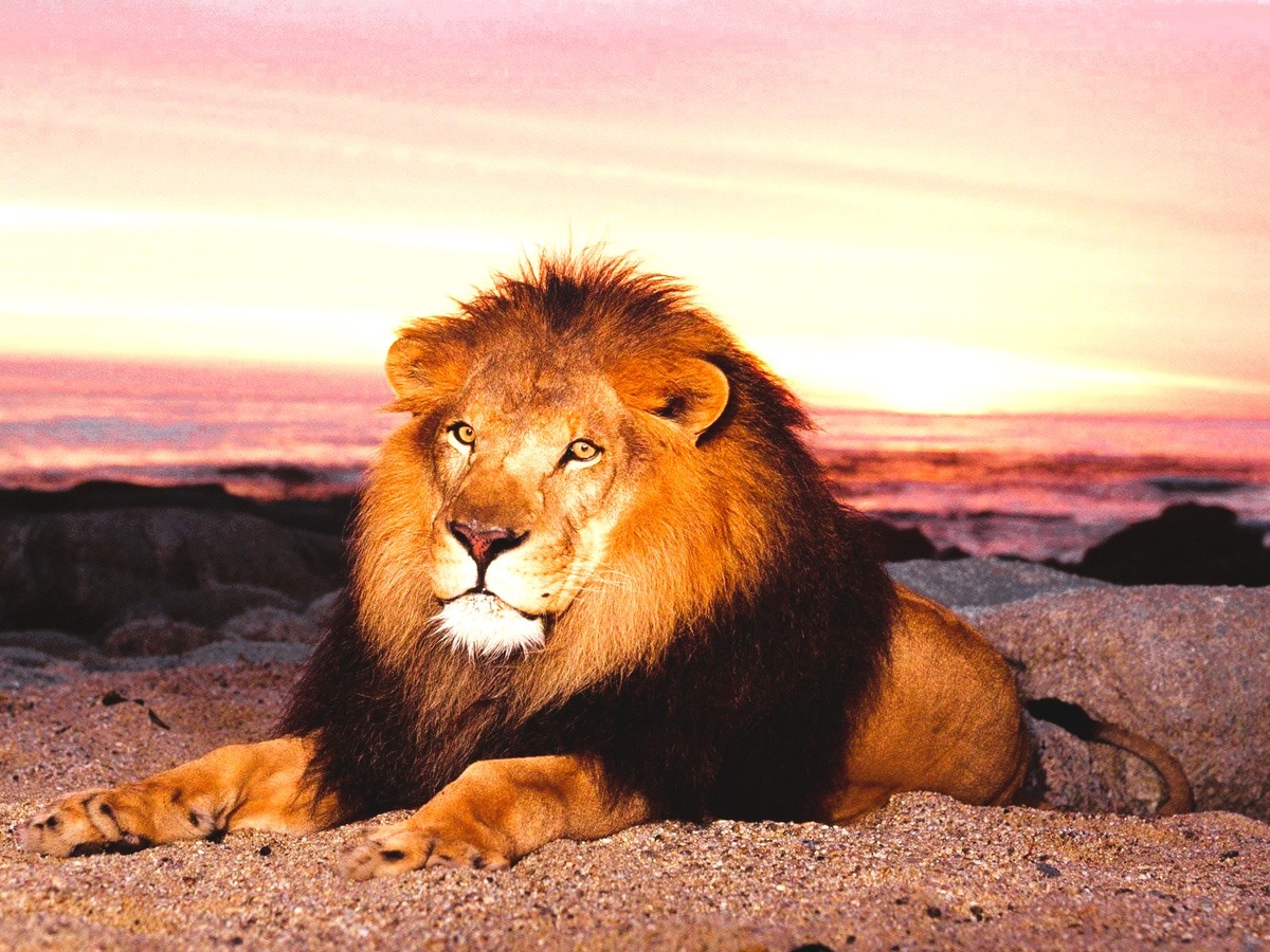 Льва считают царем зверей по следующим особенностям. Обычно лев бывает длиной немного меньше трех метров и весит от 180 до 230 килограммов. Среди кошек только у львов легко отличить самца от самки. У львиц отсутствует грива. Лев обладает огромной физической мощью. Одним ударом лапы он валит с ног трехсоткилограммовую зебру. Несмотря на солидный вес, этот хищник превосходный прыгун. Один очевидец утверждал, что лев на его глазах перемахнул через ущелье шириной в 11 метров. Трехметровый прыжок в высоту для льва вообще обычное дело. Львы охотятся на пасущихся животных, поэтому они живут на более или менее открытых пространствах, а не в лесах. А так как львы должны пить хотя бы один раз в день, они обычно живут недалеко от водоемов. Лев днем спит, а охотится ночью. Он может жить один, или в паре, или в группе от четырех до десяти особей. Львы в основном питаются зебрами, газелями и антилопами. Иногда они нападают на жирафов, но никогда не трогают слонов, носорогов и бегемотов. Когда