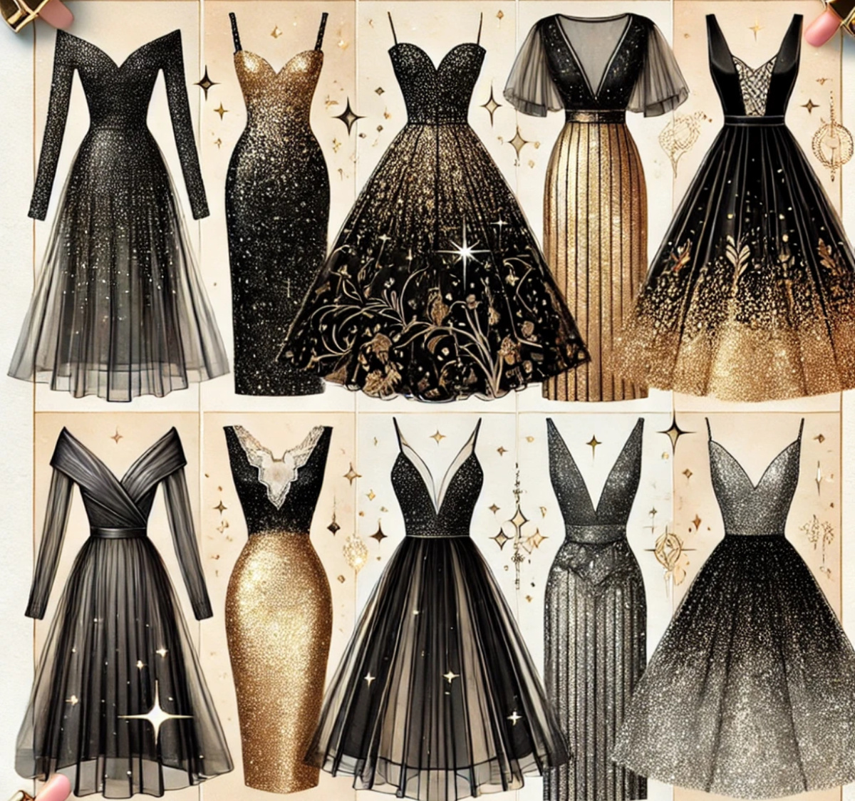 1. Маленькое черное платье с пышными рукавами