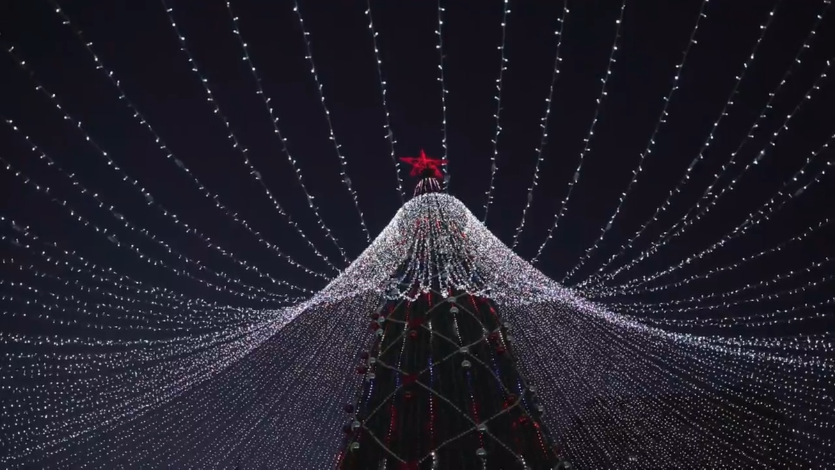 Главную новогоднюю елку ЛНР торжественно зажгли на Театральной площади Луганска в пятницу.