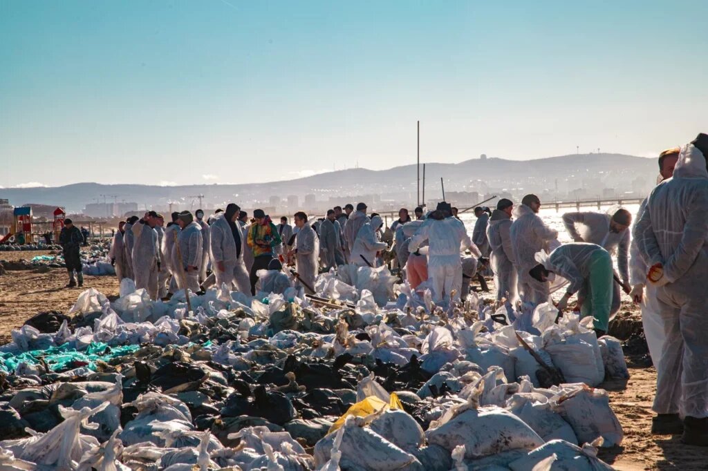 Волонтеры, которые убирают мазут, получают все необходимые принадлежности