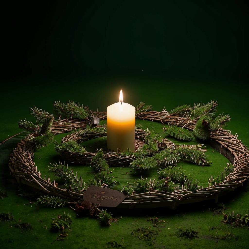 Представь себе большую спираль, выложенную из еловых или сосновых веток прямо на полу. В самом центре этой спирали горит большая свеча – это главный источник света. Все собираются у входа в спираль, у каждого в руках по яблоку (оно будет как подсвечник) и маленькой свечке. Дальше начинается самое интересное. Первый человек заходит в спираль и в полной тишине идёт к центру, где горит большая свеча. Он зажигает от неё свою свечку и ставит её в яблоке где-нибудь на ветках спирали. Потом возвращается обратно. За ним идёт второй, делает то же самое, потом третий, и так далее. Получается красивая картина: сначала первый идёт почти в полной темноте, ориентируясь только на дальний свет в центре. А потом, когда уже много свечей зажжено, последние идут по такому сияющему коридору из огоньков! Главная идея в том, что даже когда вокруг темно и не видно, куда идти, всё равно есть свет, к которому можно стремиться. И когда ты сам зажигаешь свою свечу, ты освещаешь путь и другим. Это как в жизни: кт