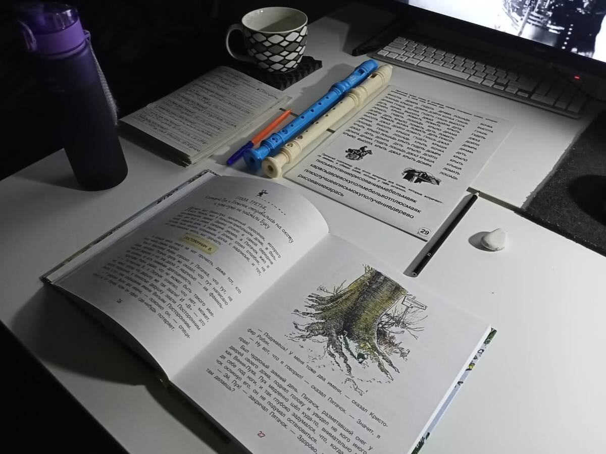 Миг (446). Начали мы сегодня новую эпопею. "Дудочки" назову её. Цели нет никакой вообще, ибо... я и музыка - это нечто. Медведи толпой пробежали мимо моих ушей. Но тут же мы хотим дыхание нарастить человеку, который Гриша. То есть, что бы не делали, главное дуть в дуду и подольше. Цель такая. А значится, так её и сформулирую. 100 занятий "дудочки". А там посмотрим. Сегодня прошло первое. И Гриша там даже что-то импровизировал))) Чем вызвал у меня вот такую реакцию. Шок))) Потому что он дул и что-то там зажимал. И даже перебором))) Конец. П.С. А ещё она, флейта, почему-то просто понравилась Грише... Он в неё дуди в свободное время. Обычно ничего такого он не делает. Когда уроки заканчиваются, он всё оставляет, что с ними связано. А тут носит с собой и дудит в неё. Смотрит что-то и дудит в неё. Не так чтобы долго, но периодически. Что я думаю про звук этого дудения?.. Ну... это не очень громкий высокий звук. По ушам не сильно бьёт. МИГ. Что это?