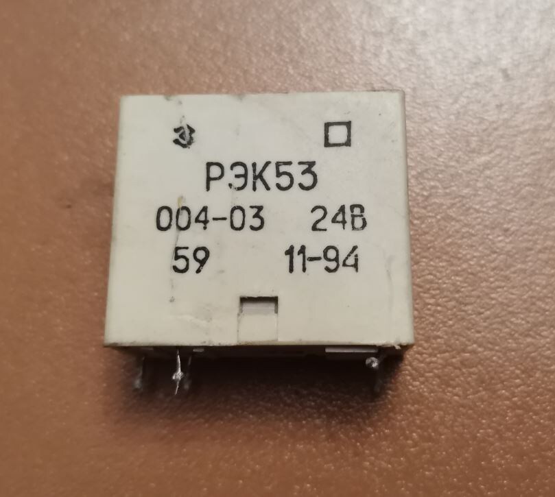 Электромагнитное реле, постоянного тока, низкочастотное, неполяризованное, одностабильное Технические характеристики реле РЭК 53 Основные размеры (длина, ширина, высота) — 29,5 * 13 * 26,2 (мм) Масса — 25 г Падение напряжения — 150 мВ Время срабатывания — 20 мс Количество и тип контактов — 2 на замыкание (2З) Номинальные режимы коммутации на одну контактную группу (100000 циклов) — 30 мА, 12 В; 1 А, 30 B = 0,8А, 245В~ Материал контактов: Ag Окружающая температура — °С -45 — +60 Вибронагрузки, Гц\ g — 20-80\5 Ударопрочность, g — 15 Ценные элементы в реле РЭК 53 Контакты техническое серебро 99% — 0,1 г Контакты легко отделяются механически или делается срезка. Металлы: Медь — 2,8 г Сталь — 3,5 г Содержание драгоценных металлов в реле РЭК 53 РВИМ.647.612.004.ТУ Золото : 0 Серебро : 0,1125 г Платина : 0 МПГ : 0